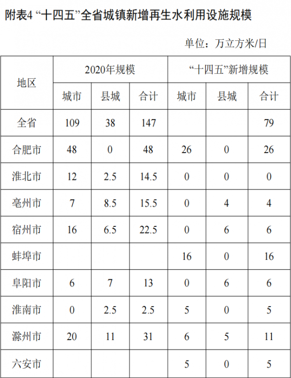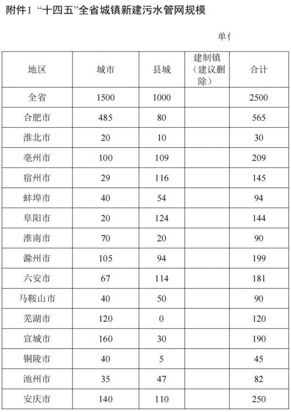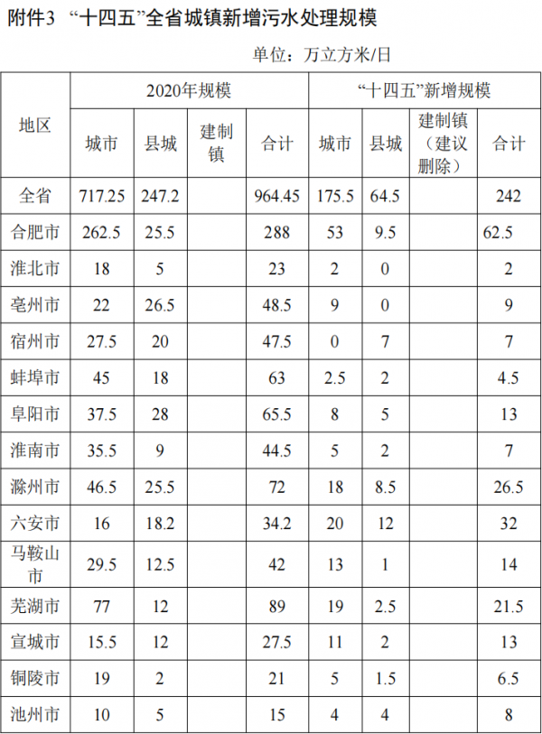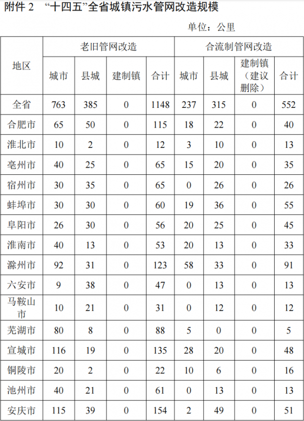 “十四五”安徽省城鎮(zhèn)污水處理及資源化利用設施建設項目庫